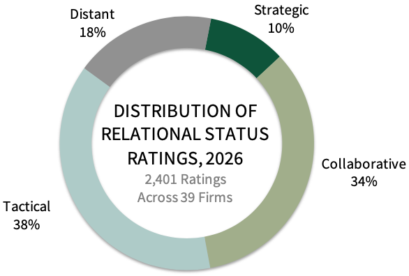 There are multiple levers within the control of a manufacturer to drive more collaborative & strategic relationships beyond its size and contracting value. Size and portfolio breadth simply determine how many chances you get, not whether you succeed. The complete report provides detailed customer feedback on exemplary manufacturer relationship building and how manufacturers can move from distant/tactical relationships to those that are more collaborative/strategic.